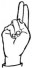 На ћирилици написано КОСТАДИН ДУРКАЛИЋ састоји се из 16 слова [?]. Исписано ћириличном једноручном азбуком за глувонеме: